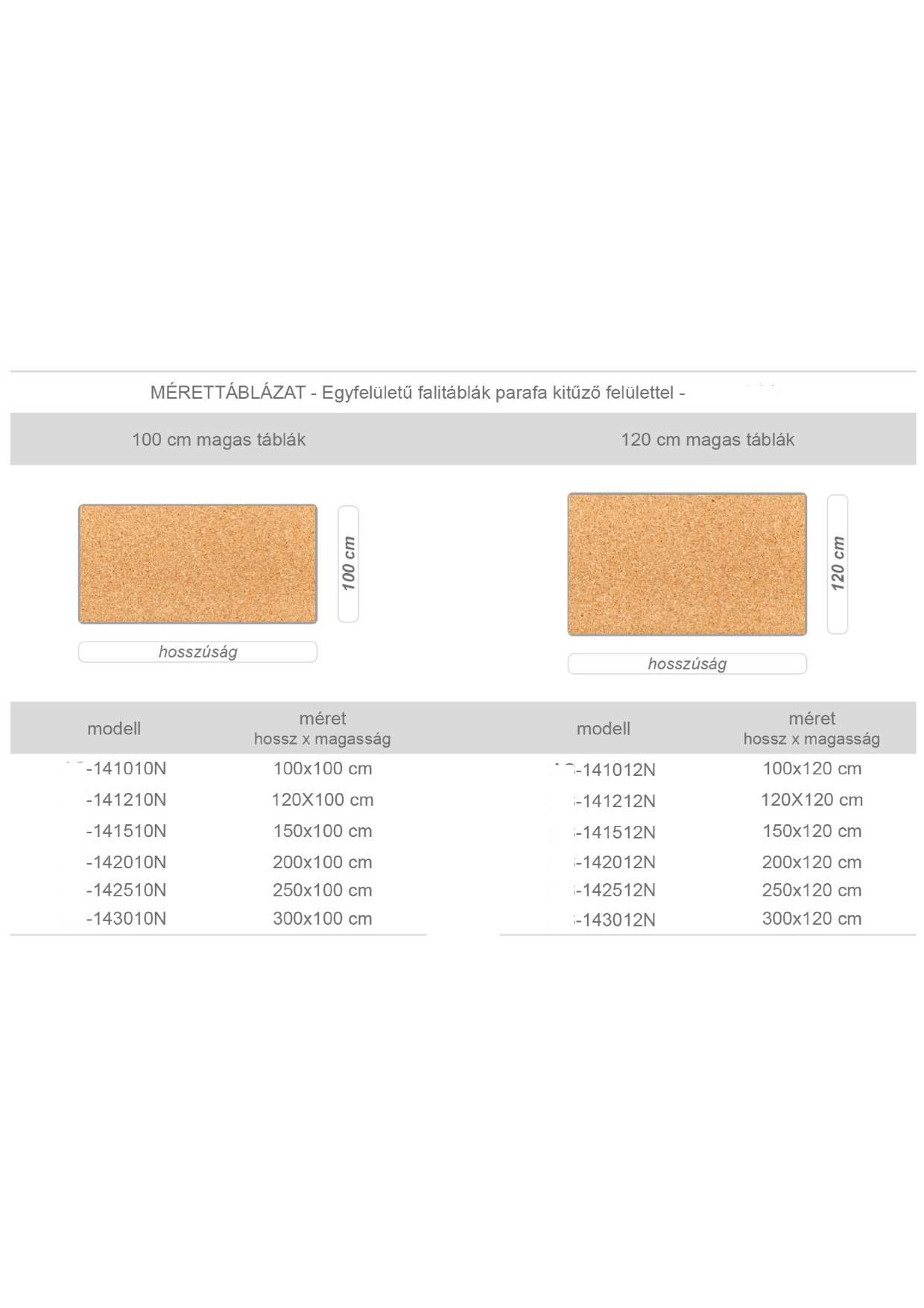 Prémium minőségű parafatábla plakátok, prospektusok, belső információk ... kitűzésére. A minőségi, speciálisan préselt parafaréteg alatt többrétegű rugalmas sejtszerkezet található. A szurkatű nem hagy nyomot, a parafa hosszútávon megőrzi eredeti minőségét. A tábla exkluzív megjelenését az eloxált alumínium keret teszi teljessé. A parafatáblák 100 és 120 cm-es magassággal is rendelhetőek.